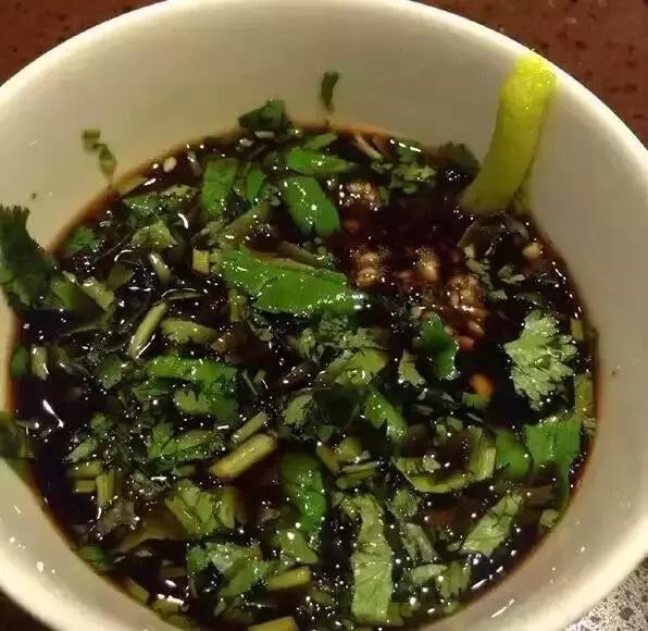 海鲜汁+沙茶酱+香葱+香菜+小米辣