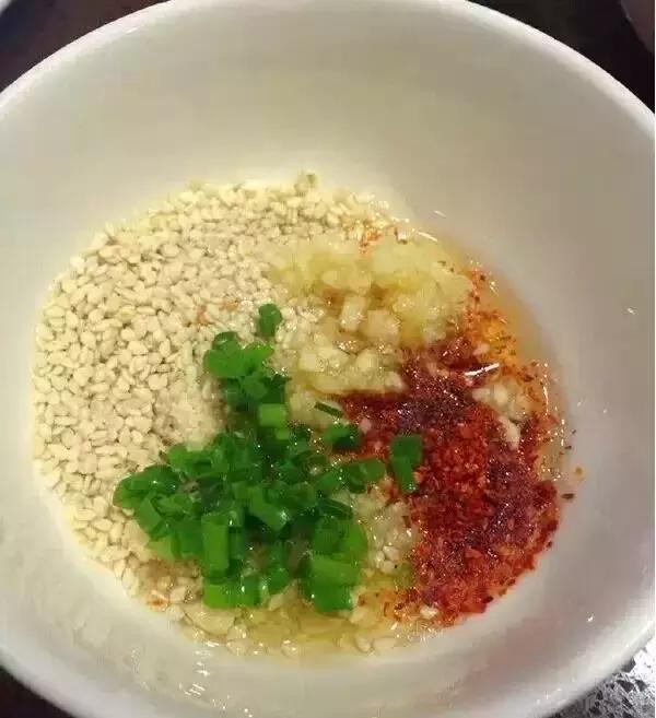 香油+芝麻+花生碎+蒜泥+辣椒面+葱花