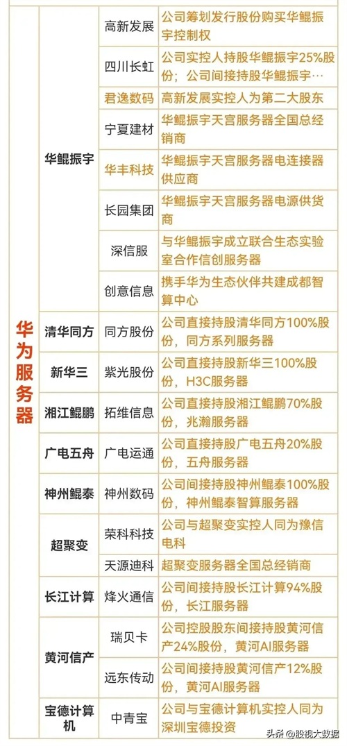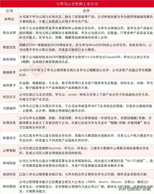 电科数字:中国大陆IT行业首家上市公司,华为是公司重要客户之一。合作领域:行业信息化解决方案以及数据中心智能化解决方案两大业务。(央企)