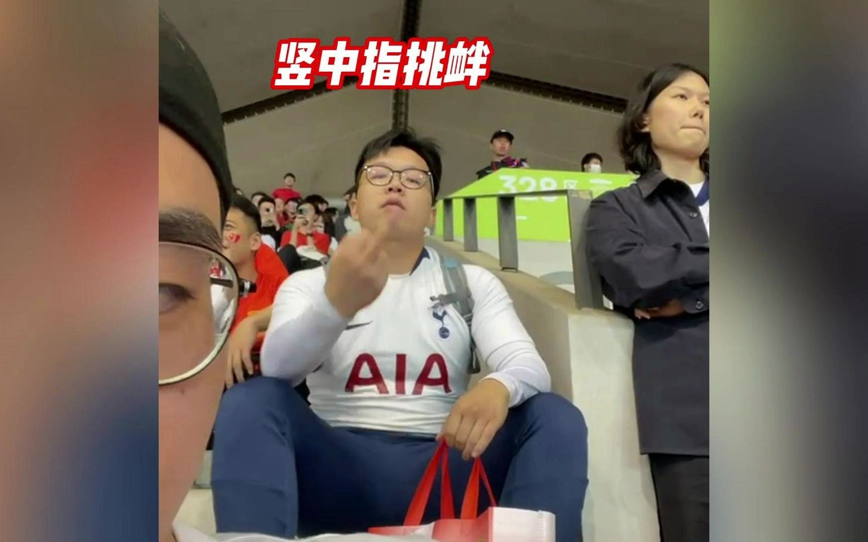 当天,韩国队与中国队进行了一场备受瞩目的比赛。双方球迷都聚集在各自的球迷区,为自己的队伍加油助威。孙兴慜作为韩国队的明星球员,吸引了不少中国球迷的目光。然而,就在比赛进行到中场休息的时候,一个中国球迷却在国足球迷区做起了挑衅动作。