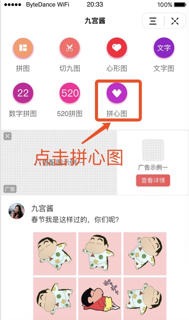 首先,打开九宫酱, 点击拼心图。