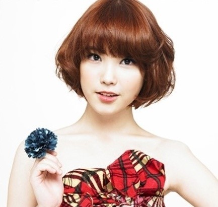 浅棕色的小短发加上稍卷的弧度,配上小礼裙,展现了IU的可爱魅力。