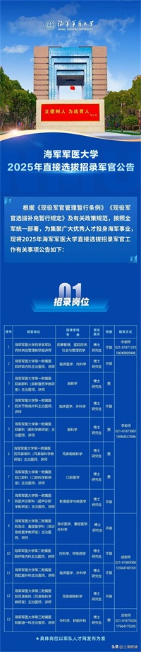 海军军医大学介绍,根据《现役军官管理暂行条例》《现役军官选拔补充暂行规定》及有关政策规范,按照全军统一部署,为集聚广大优秀人才投身海军事业,现将2025年海军军医大学直接选拔招录军官工作有关事项公告如下↓