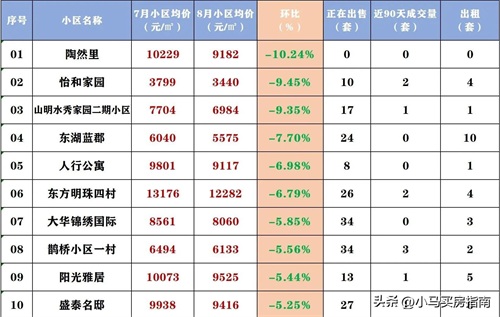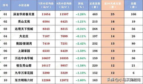你家的小区是涨了还是跌了呢?大家一起来对比看看吧。