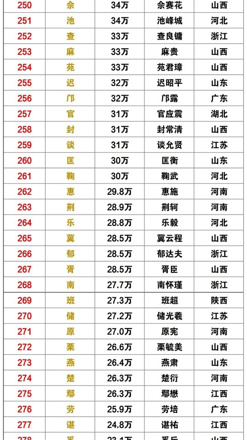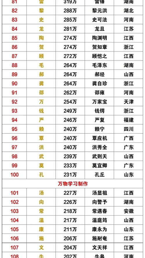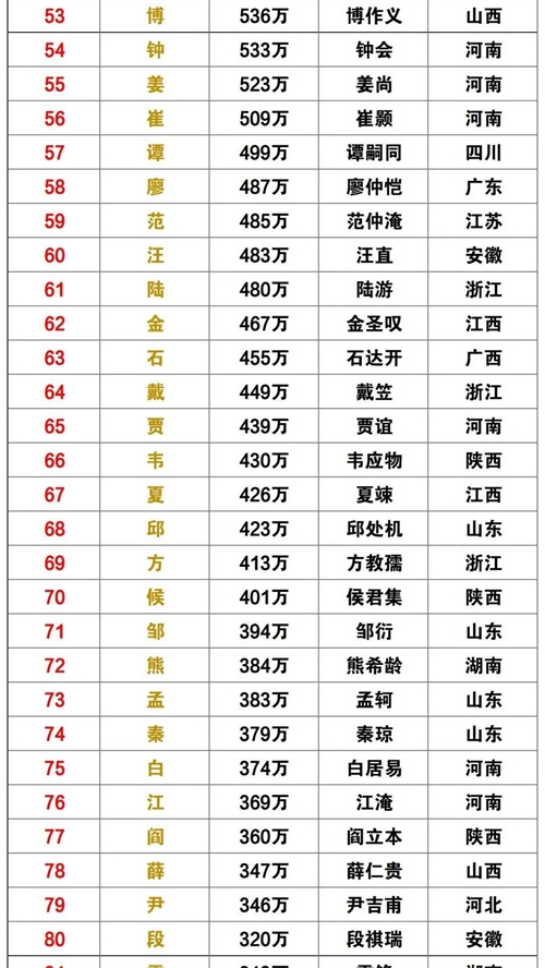 “中国百家姓排名总汇”