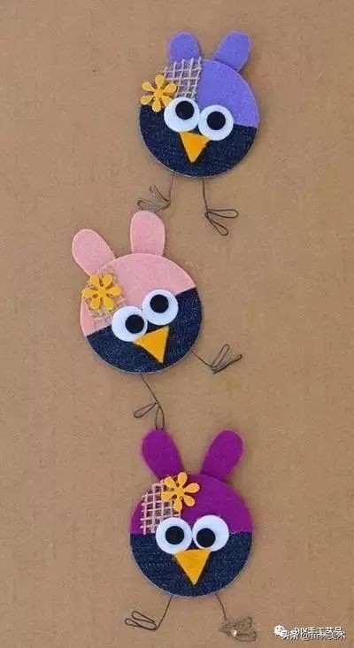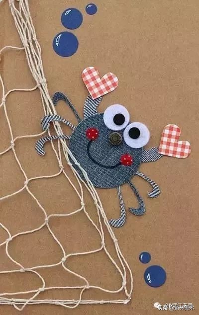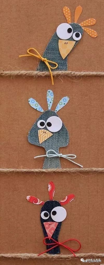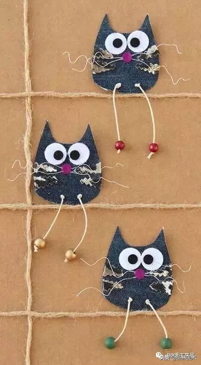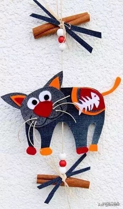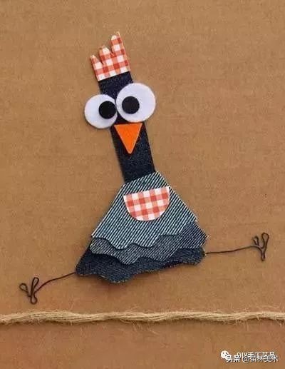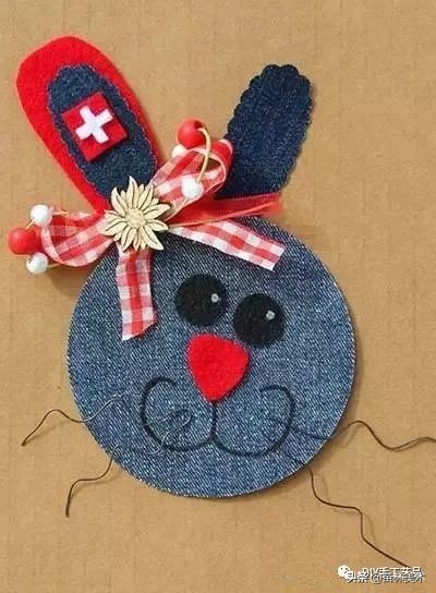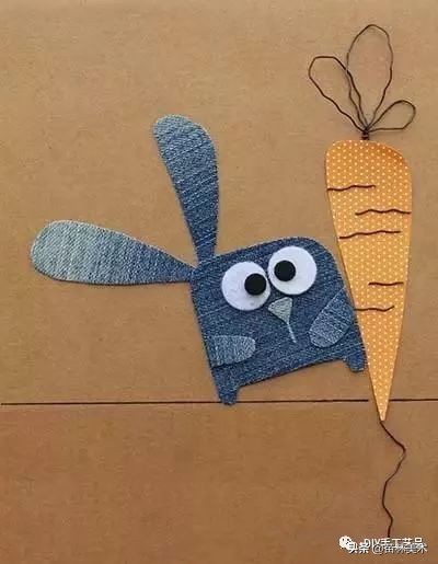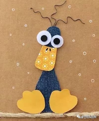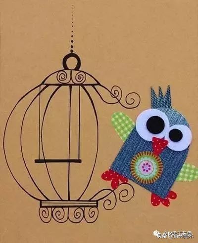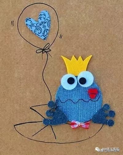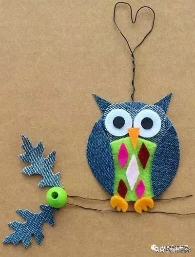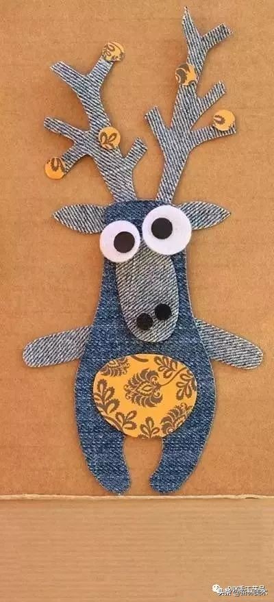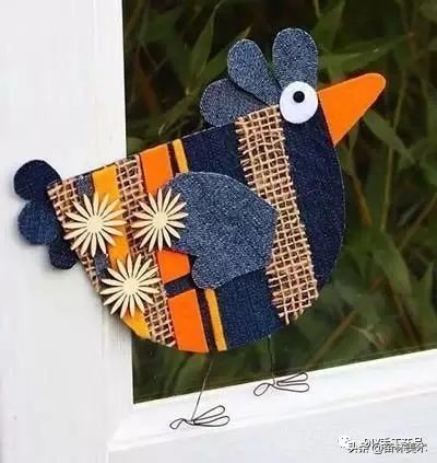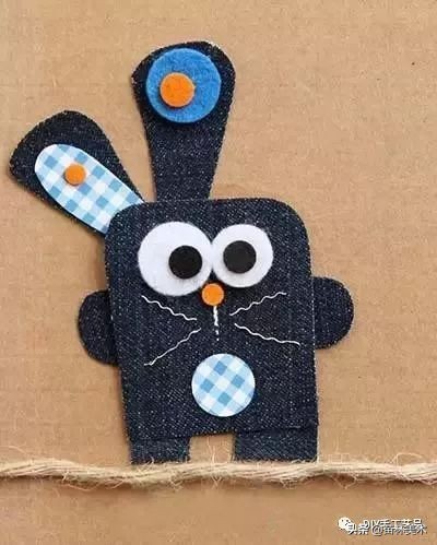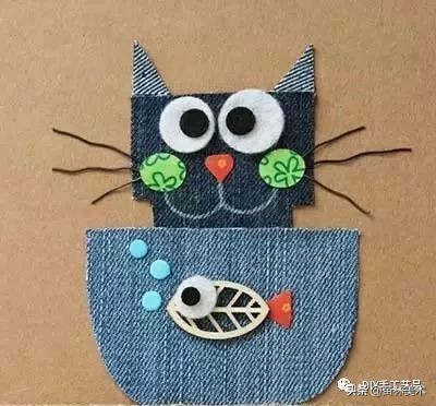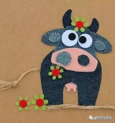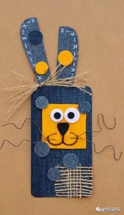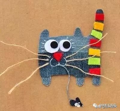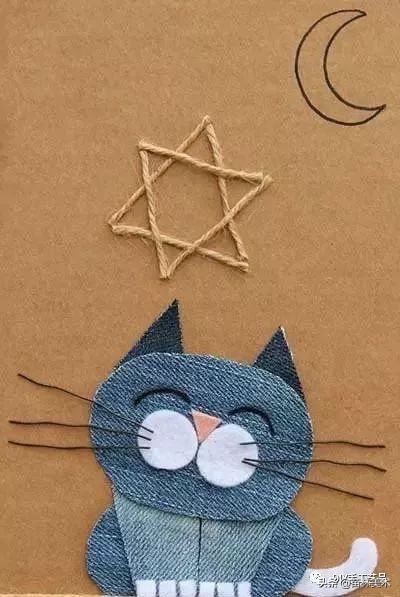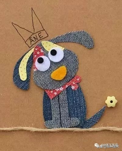 相信每个人看到这些人见人爱的布贴作品,心里都会由衷发出赞叹,实在是太可爱了,是不是?谁能想到,冷冷的,旧旧的,硬硬的牛仔裤,竟然可以变成这么多童趣十足,惟妙惟肖的动物,纸板,麻绳,不织布,软铁丝与牛仔布的结合是如此巧妙而协调,这下家里的废旧牛仔裤,可以不用扔进垃圾筒了,剪剪贴贴,充满想像力的牛仔裤布贴,现在就做起来吧!