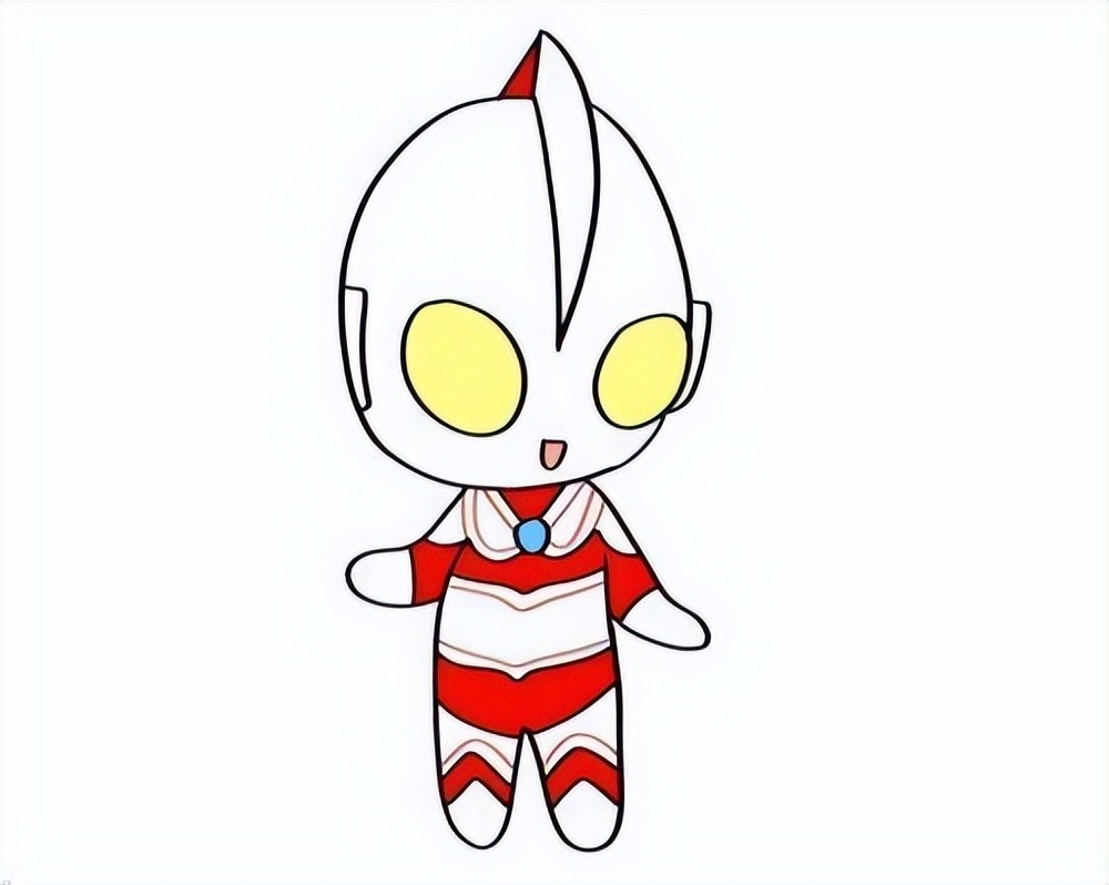5.最后把奥特曼的眼睛涂成黄色,简单的奥特曼简笔画就完成了。