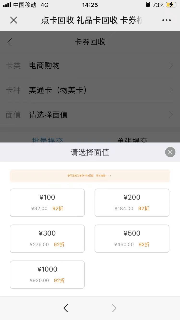 5.选择批量提交或着单张提交,输入卡号和卡密提交即可
