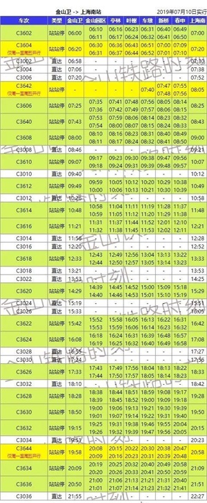 部分来源:金山铁路时刻