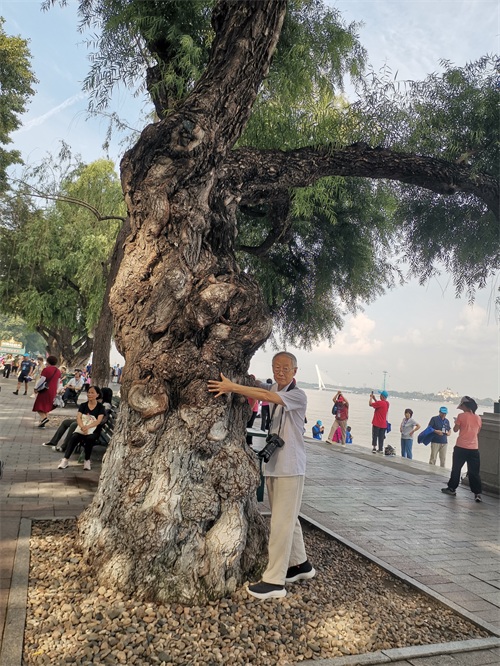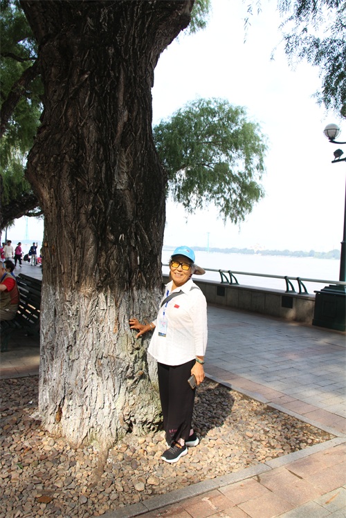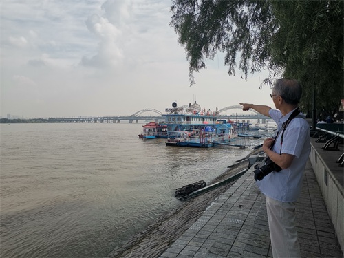 看到远处的抗洪纪念塔
