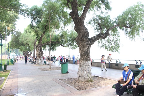 这样一个沿着松花江的岸边绿化带,是一个免费的开放式公园。旅行社给我们安排这样的风景区,省了购票检票查验人数的麻烦,很好。