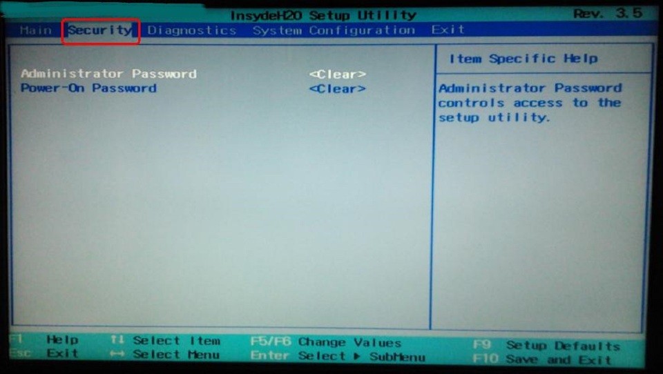 Administrator Password: Bios 管理员密码