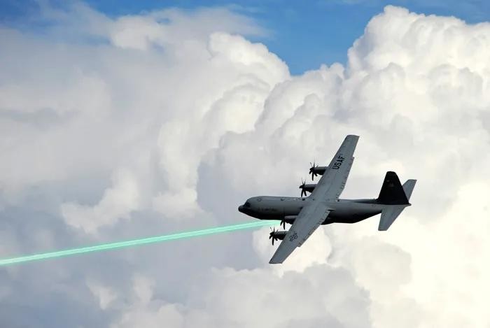 AC-初期型号上使用从7.到的各种机枪机炮;并携带大威力的重磅炸弹,如用于铲除大面积丛林的重型BLU-82炸弹。近期的H型使用一门榴弹炮,改进自陆军的炮,加装反后座装置;一门福博斯机关炮;两门六管加特林炮;有时加装一些机枪。U型则将炮换成了GAU-12五管加特林炮。上述武器均由先进的探测和火控装置控制,包括先进的多座火控雷达和热成像仪。右图中可以看到各种武器和巨大的光学和热成像观瞄吊舱。这些装置中包括侧视多模式攻击雷达,该雷达不但能够用于搜索瞄准目标,还能测算和炮弹的命中点,于瞄准点进行比较,随即同步对枪炮进行瞄准修正,提高命中率