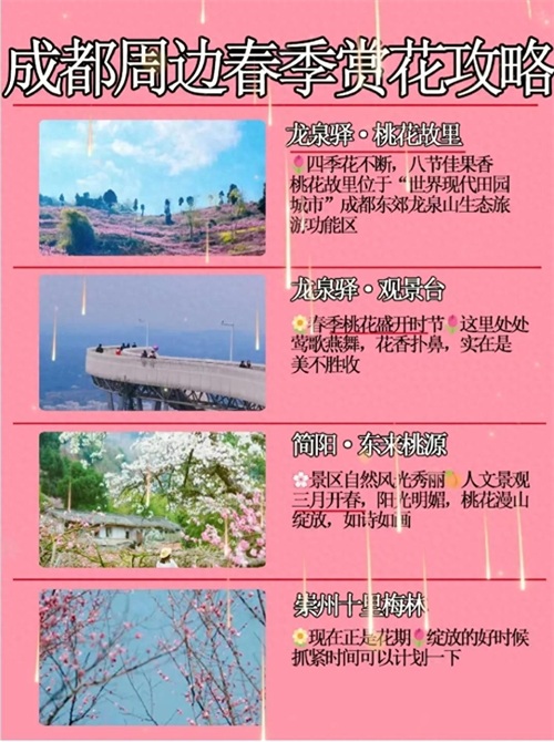 春天来了,成都周边的花也开始争相绽放,美得让人心动。今天小编就给大家分享一些成都周边赏桃花的好去处,快约上你的亲朋好友。