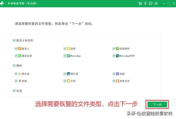 步骤2: 选择想要恢复的文件类型,进行下一步操作并等待扫描。