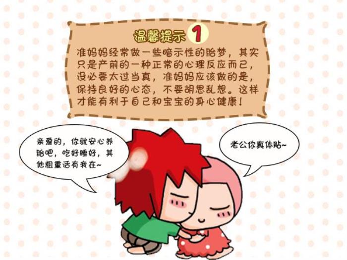 上面这些梦都是美好的梦,说明孕妈妈心情不错,平时家庭合睦、和同事朋友关系融洽、工作也很顺心,身体也很舒服。