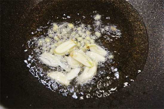 3、先大火把锅烧热,油可以稍微多一些,加入姜片、姜末爆香,直接加入2勺白醋。