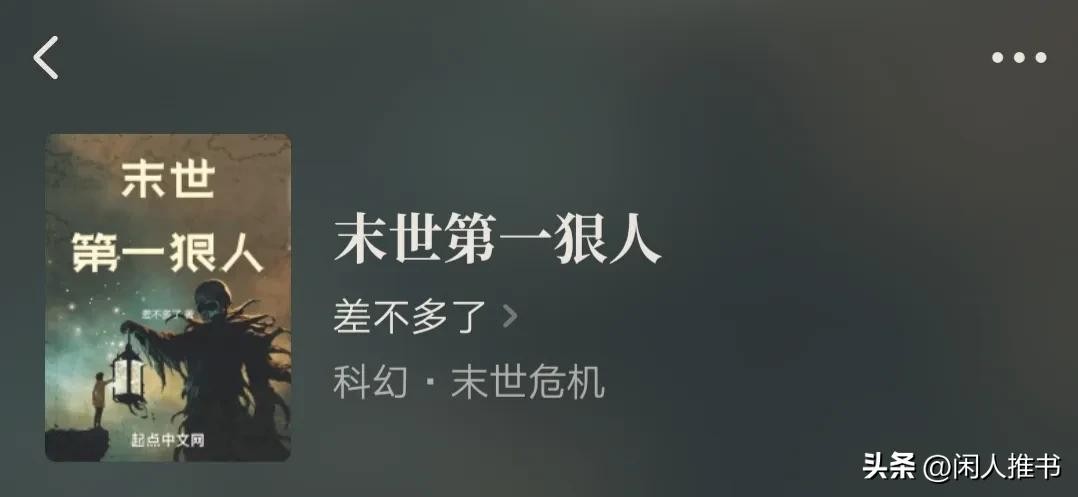 第二本,《末世第一狠人》作者:差不多了。字数,51万字连载中。类别,科幻.末世危机。起点首发。标签:丧尸、热血、腹黑。