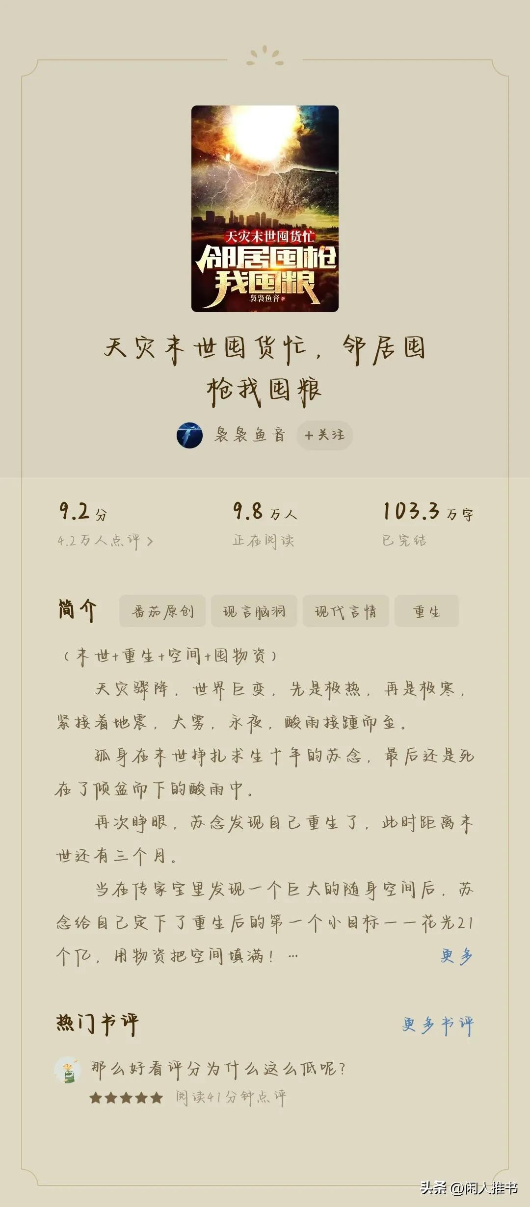 成就,算是目前仅存的正版老末世文 。