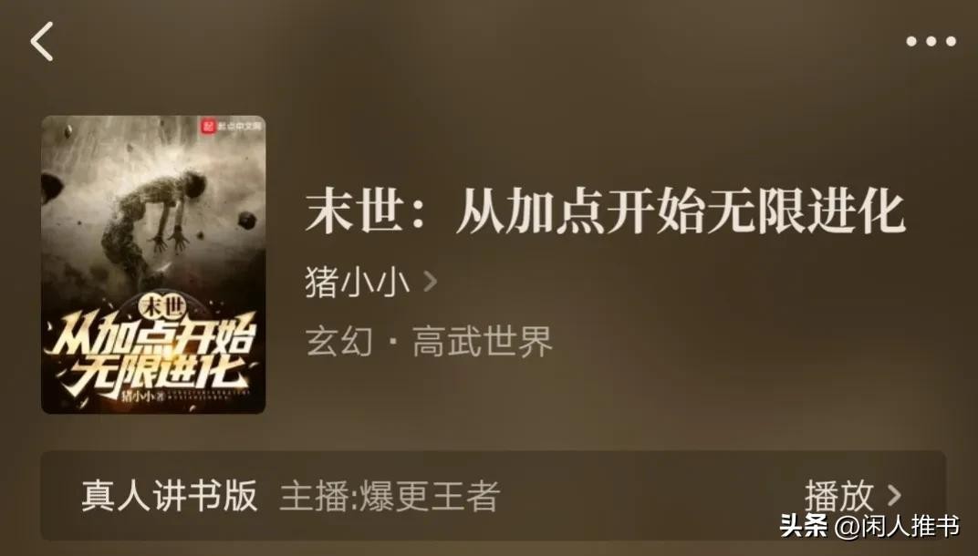 第五本,《末世:从加点开始无限进化》作者:猪小小。 字数,318万字连载中。类别,玄幻.高武世界。起点首发。标签:升级、轻松、快节奏。