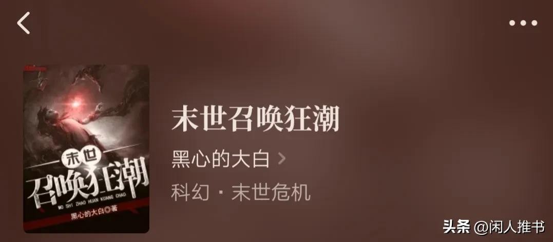 第三本,《末世召唤狂潮》作者:黑心的大白。字数,384万字已完结。类别,科幻.末世危机。起点首发。标签:召唤、末世、无女主。