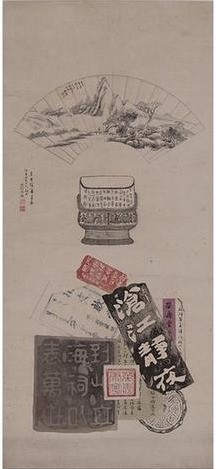 “锦灰堆”的画面布局看似杂乱无章,实则乱中有序,既要讲究中国画的疏密聚散、浓淡干湿,且画面中所绘"杂物"应有引用的出处和依据。