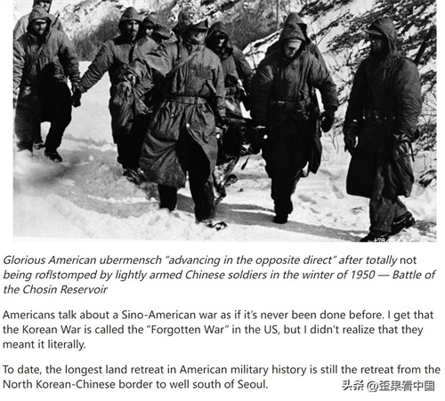 1950 年冬天,光荣的美国超人们没有完全被轻装上阵的中国士兵击溃,而是“朝反方向前进行” ——长津湖战役
