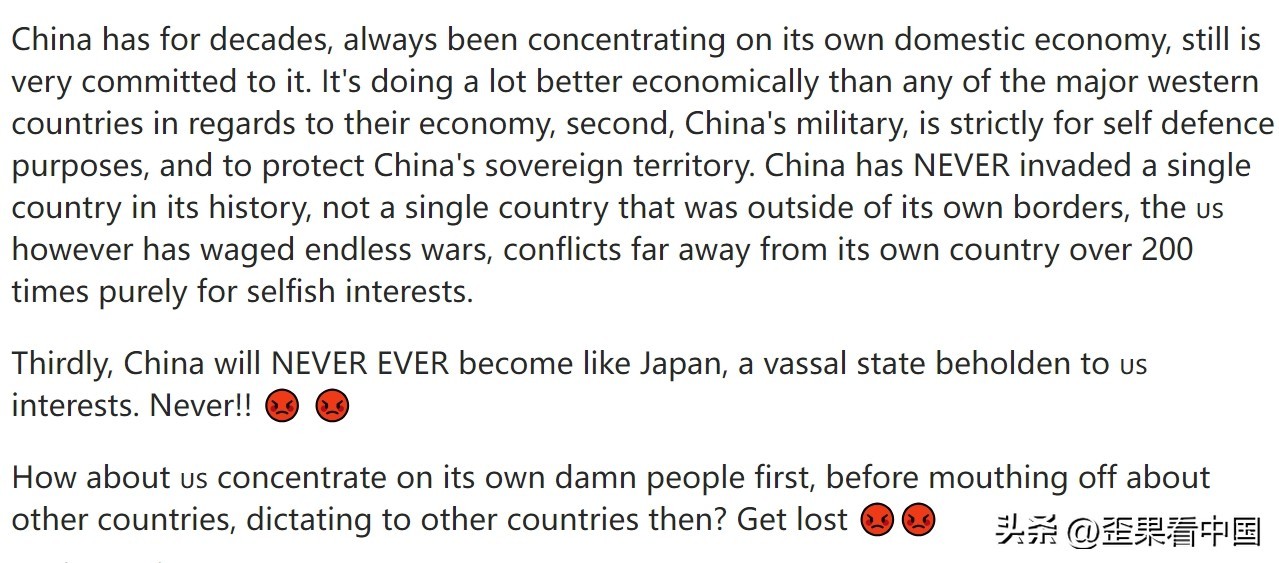 第三,中国永远都不会成为像日本那样,成为一个受制于美国利益的附庸国。永远都不会!!