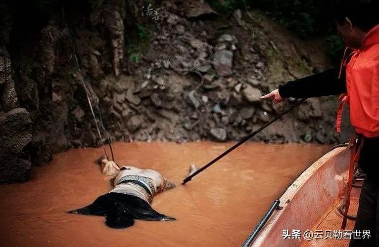 比如在打捞尸体的时候,为了帮助死者的尸体“辟邪”,捞尸人会把尸体旁边的杂草、杂物等拨开后,才把尸体打捞上来。保证打捞上来的只有尸体,而没有水中其他的杂物。再将尸体打捞上来后,还用白布蒙住尸体,再用狗毛做成的麻绳,绑在尸体的腰间之上,再将尸体吊在背阴的悬崖上,等家属前来辨认。