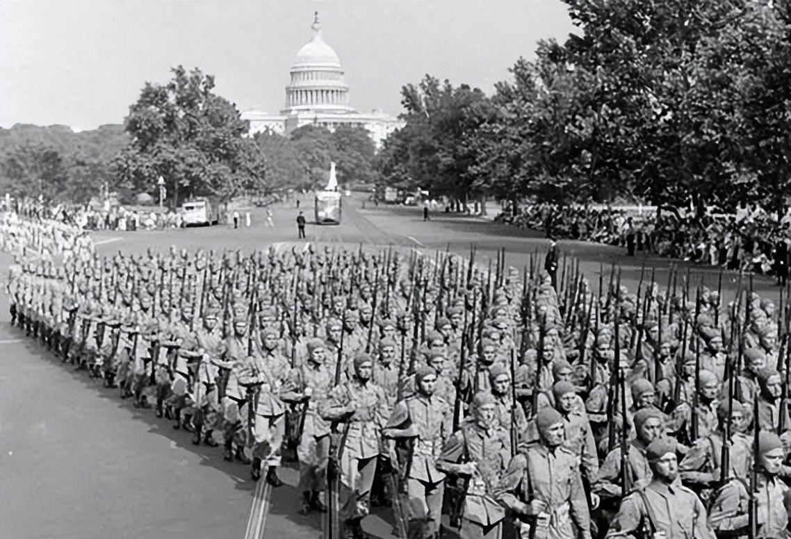 直到1919年,第一次世界大战结束后,美国觉得自己已经有群雄逐鹿的资本了,于是便组织了2.5万名士兵在纽约第五大道举行了全副武装的第二次阅兵。