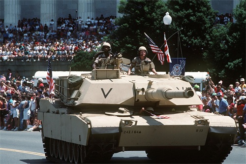 为了庆祝胜利也为了大声告诉世界自己的强大,约1万人再次聚集华盛顿等待人民的检阅,但这次的主角并不是士兵,而是那些先进的武器装备。