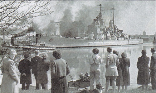 “前卫”号缓缓驶入港口,为伊丽莎白二世女王的加冕典礼作准备。