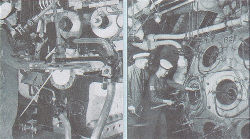 从舰上中层甲板可到动力舱、锅炉舱、发电机舱等处。4个锅炉房,每个有2个带有废气预热器以及梅洛斯科助热器的3筒锅炉。4台帕森斯齿轮传动涡轮机分布在4个机舱内,通过一个直径约12英尺的双螺旋齿轮式单减速器实现高低速换档。总功率130000马力、4轴推进。舰上有两个港泊机舱和10个作战机舱,总共4台蒸汽发电机、4台柴油机,每台都安置在特制的水密舱内,通过中甲板处的主控制室操纵。这8台发电机总共可提供200伏/2000安培直流电,通过复杂的电缆网路输送到舰上各处。通常在海上航行时,2台锅炉开动,带动2台涡轮机和发电机。作战条件下,4台锅炉及4台涡轮发电机同时开足马力,保证各部门用电,停泊港口时则完全依靠柴油发电机供应。