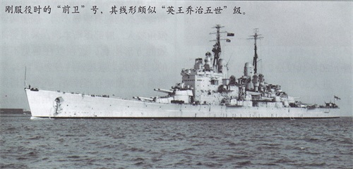 新舰在1941年10月2日由苏格兰克列德班的米赛・约翰・布朗公司开工建造,这里基本不用担心敌机的侵扰,但建造进度仍较慢。1944年11月30日,“前卫”下水,次年5月25日正式建成。但此时欧洲战场已鸣金收兵,太平洋上也无须英国人“过分操心”。就这样,一不小心,“前卫”号成了一艘被战争遗忘的战列舰。