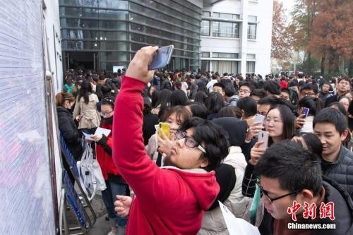 资料图 2019年国考,大量考生在考场外等候。中新社 苏阳 摄
