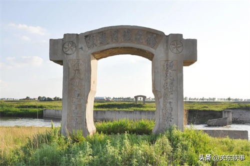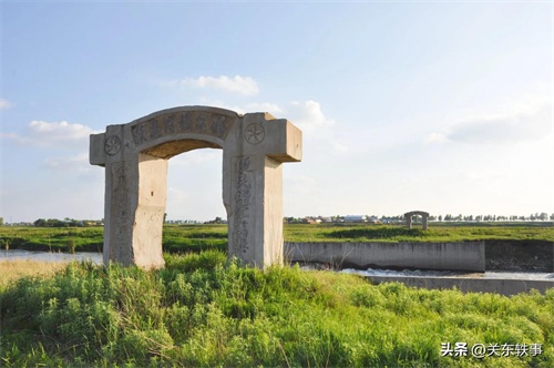 在公主岭市南崴子街道李家窝棚和梨树县东河镇于家店之间的东辽河两岸,各有一座像水泥大门一样的老建筑相互对应,看上去非常有年代感。