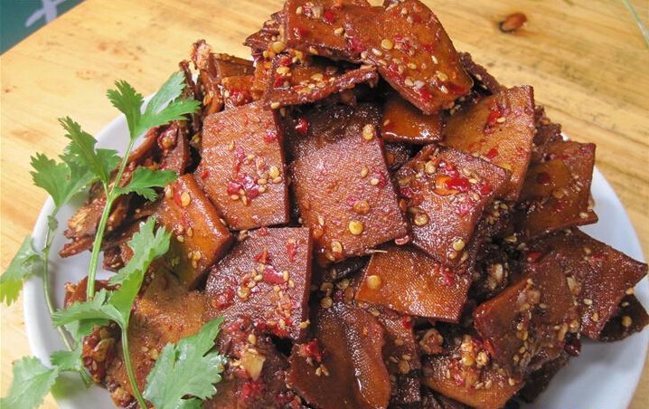 平江酱干在湖南颇有盛名,色泽浓郁,味道醇厚,吃起来软韧可口,酱香味十足,咸香开胃,让人赞不绝口,是一道独具风味的特色小食。