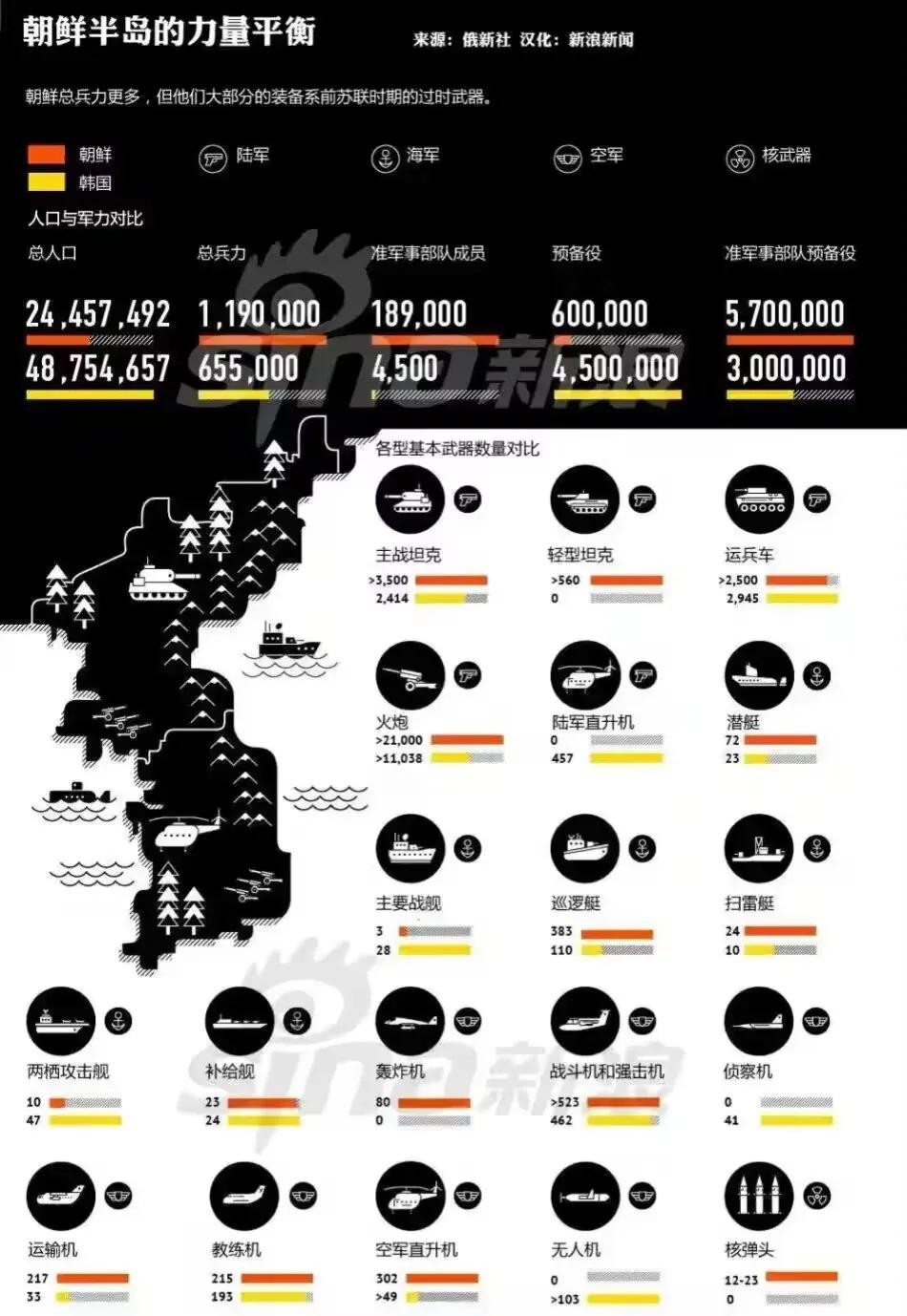 朝鲜和韩国的军事力量对比图