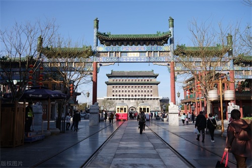 天安门广场南侧就是北京前门大街,里面有全聚德烤鸭,六必居酱园等众多老北京品牌的聚集地,在这里还能品尝到当地特色小吃。