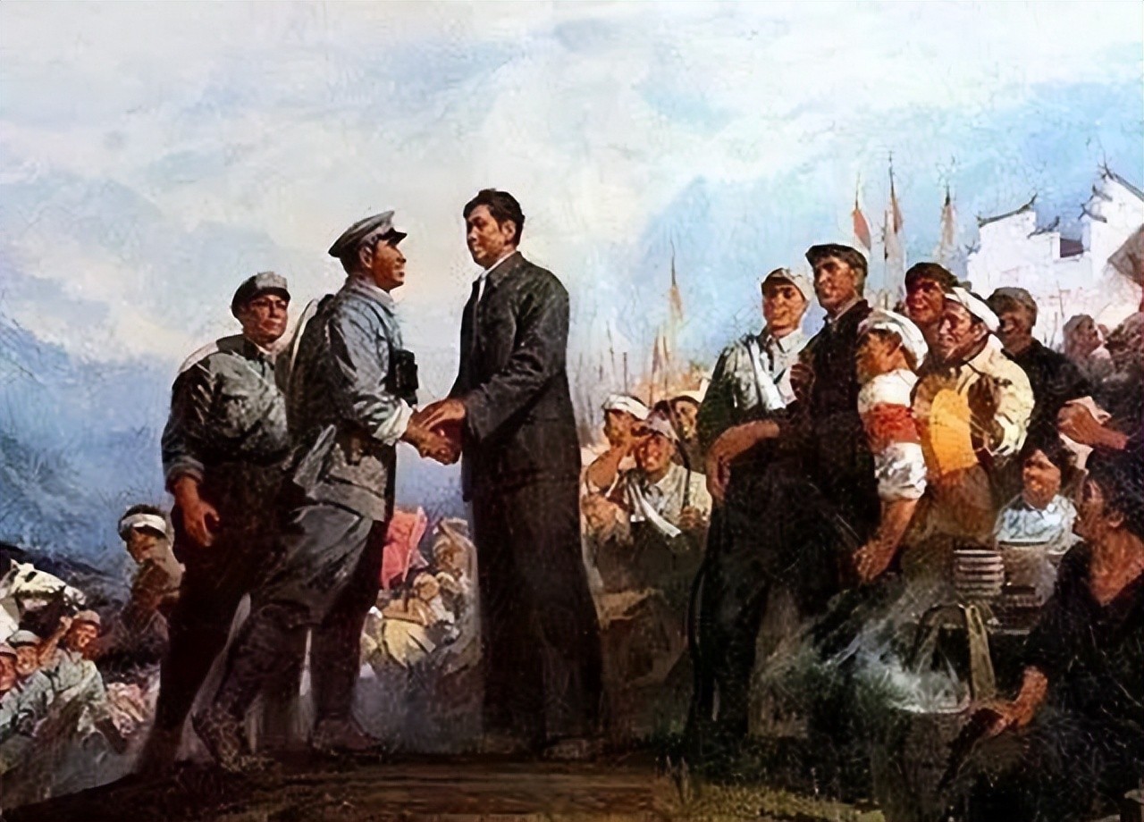 1928年4月,毛主席领导的秋收起义部队,朱德、陈毅领导的湘南起义部队以及贺龙领导的南昌起义部队在井冈山上成功会师。