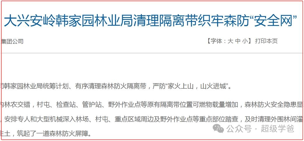 但是中国不一样,中国的林区早实现了网格化,每个网格都有护林员巡查,现在如虎添翼,又有了无人机。在重点林区的重点季节,火源是严禁带入的,更是严禁使用明火。重点地段,还设有卡口。平时感觉没啥必要,但万一卡口发现有人带易燃易爆物品,那就立了大功了。