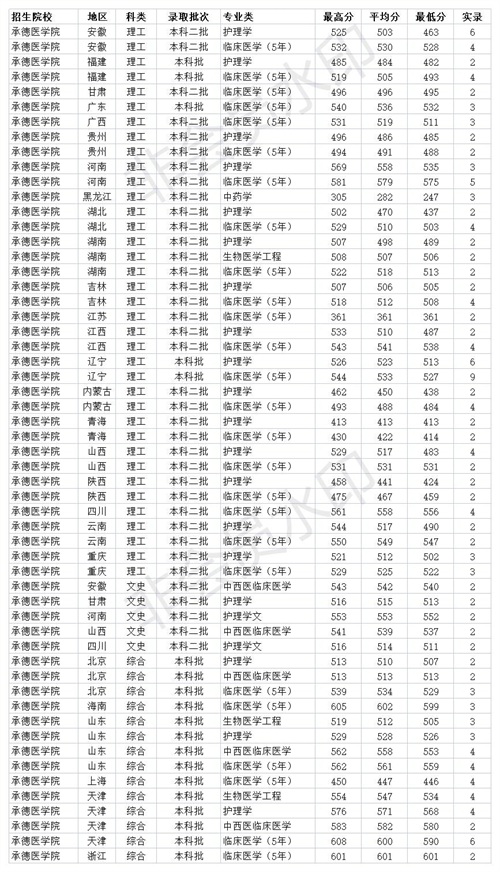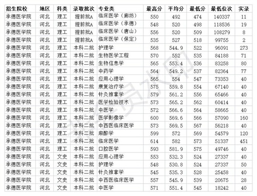 河北二本大学 承德医学院2020年各省各专业录取分数线