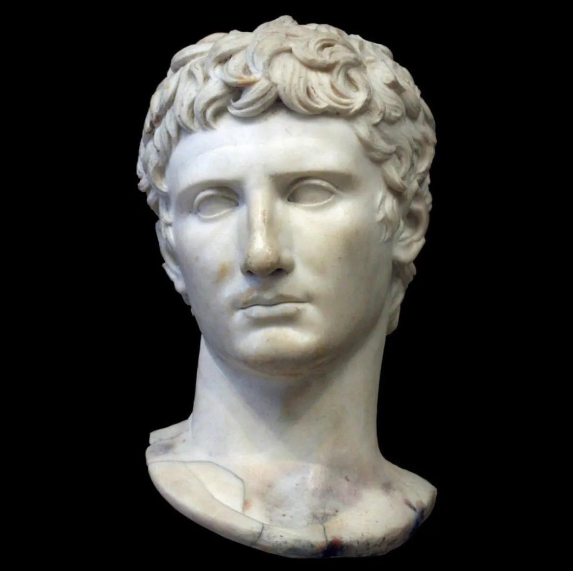 屋大维出身高贵,其母亲阿提娅是罗马最伟大的将领与实际统治者恺撒的外甥女,所以屋大维是凯撒的甥外孙。公元前44年恺撒指定屋大维为他的第一继承人,并收他为养子。同年3月,凯撒在元老院被60名元老院医院连刺23刀后身亡,结束了叱咤风云的一生。此时只有18岁的屋大维正在阿波罗尼亚军中,面对混乱危险的形势,他没有逃避或鲁莽行事,迅速返回了罗马,开始走上政治舞台。