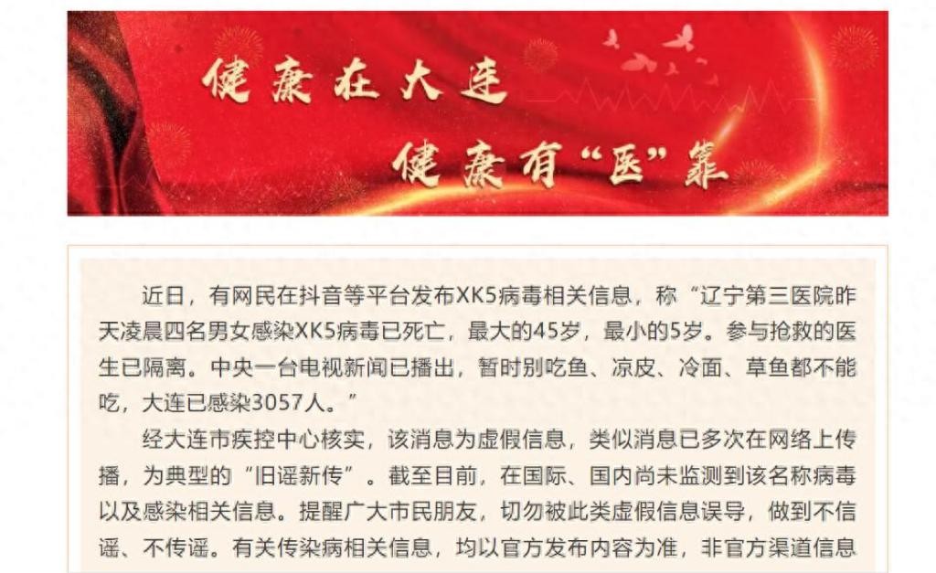 紧急辟谣!网传大连爆发XK5病毒致4人死亡?官方连夜回应!
