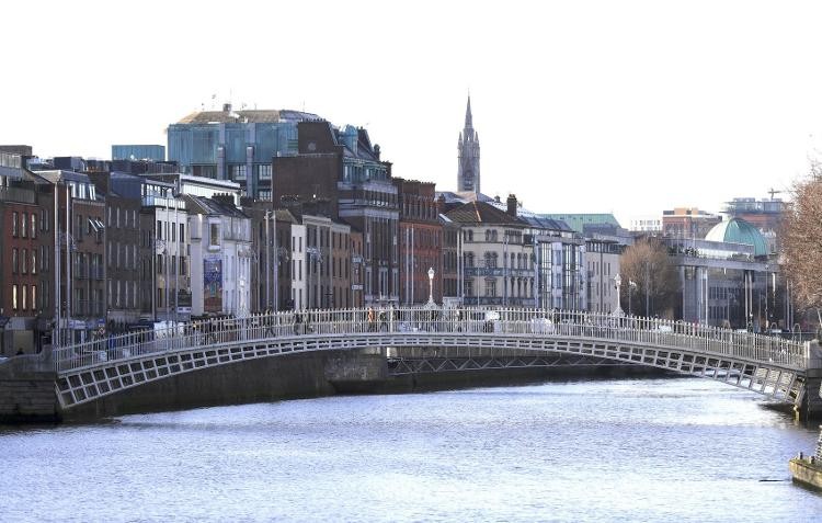 这是2024年1月15日在爱尔兰首都都柏林拍摄的半便士桥。新华社记者 李颖 摄