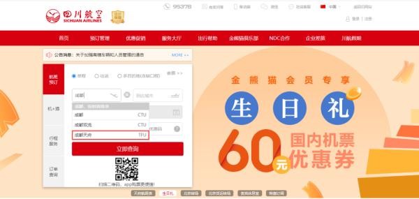 5月31日,川航成都天府国际机场航班正式进入销售状态,旅客在川航官方渠道输入“成都天府”即可搜索相关航班信息。