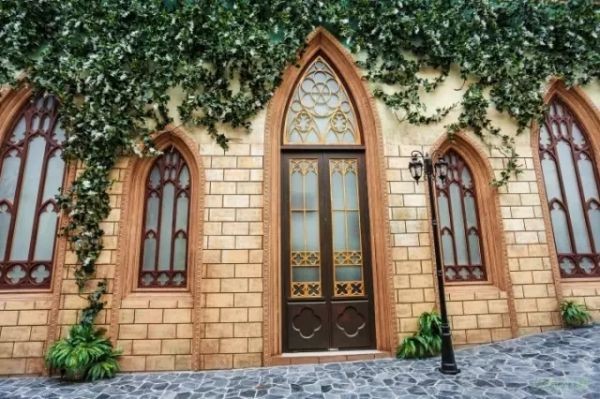 玫瑰小镇的前身是一座废弃的工业区,设计者使用穿衣戴帽的形式,将工厂厂房等建筑装修变成焕然一新的浪漫婚纱拍摄基地。
