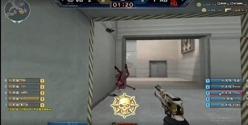 上图是一场冠军杯的较量,十年前,白鲨与70KG的巅峰之战再度上演,双方在中路对枪,70KG一方处在劣势,在这个时候手持狙击的70KG站了出来,中路秒杀两人之后,再拉到左翼,刚好有一位保卫者冲到半路,当70KG看到他的那一刻,就已经意味着要被淘汰,最后一人躲在家里,只看见一个小小的手臂,这依然躲不过狙神的鹰眼,四枪四个人头拿下该局。