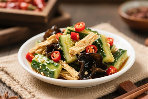 将腌好的黄瓜倒掉析出的汁水,这步能去除生涩味。焯水后的腐竹和木耳过凉开水,口感更弹牙。分层搅拌法:先拌黄瓜与干货,再淋酱汁,最后撒香菜和花生碎,保证每口都有脆、弹、香三重体验。