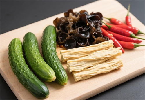 选对黄瓜就成功了一半!青皮嫩黄瓜最宜凉拌,表皮刺粒分明的新鲜货色,轻轻一掐就能渗出清甜汁水。备上3根黄瓜、1把黑木耳、3根腐竹,再配些红艳艳的小米椒,既添色彩又增食欲。